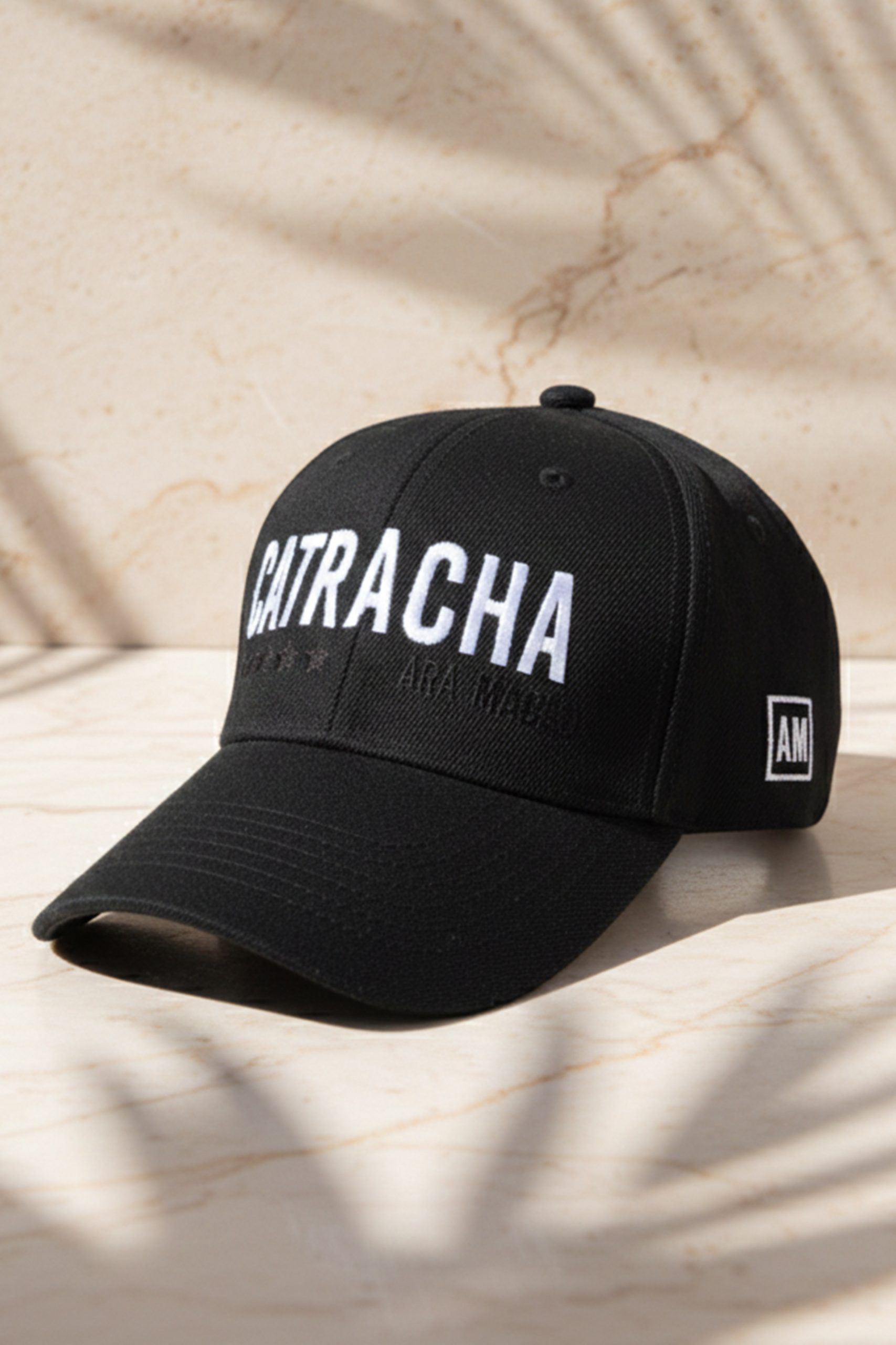 DESCRIPCIÓN: Gorra de lona, color negro, ajustable con faja de velcro. Unitalla. Bordado frontal y lateral con tacto. 100% AcrÃlico.