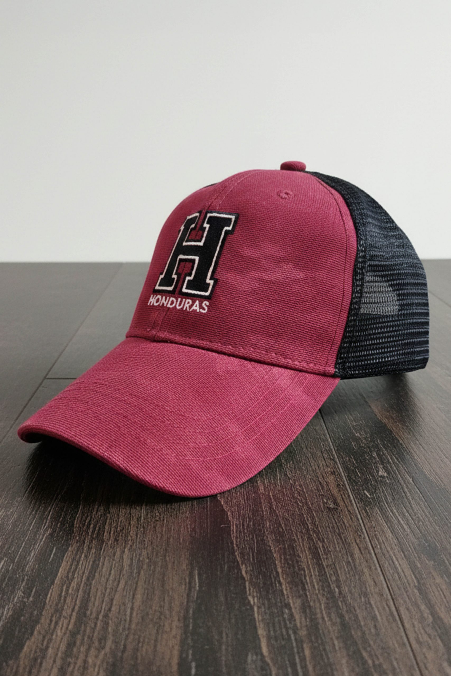 DESCRIPCIÓN: Gorra ocre con malla negra, tipo camionera, ajustable con faja. Unitalla. Bordado frontal con hilo 100% acrÃlico.