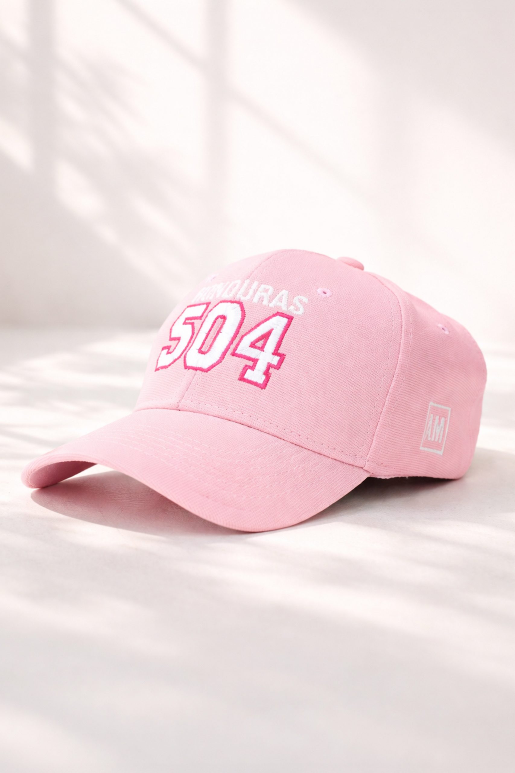 Gorra rosada con faja ajustable de velcro. Unitalla. Bordado frontal y lateral con hilo. 100% acrÃlico.