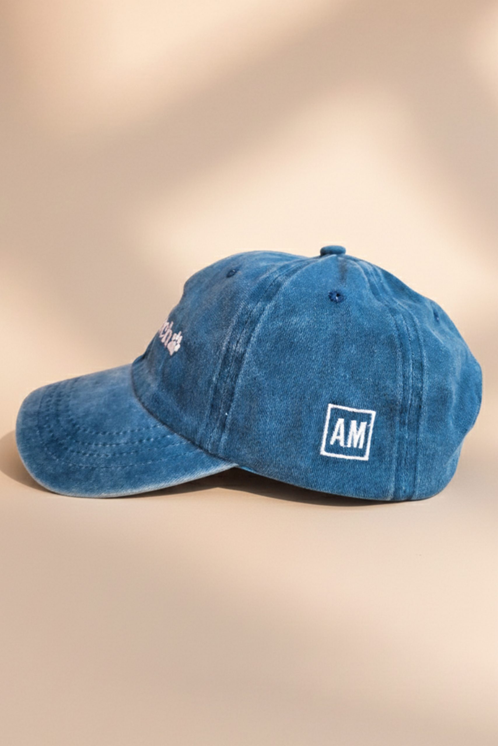 DESCRIPCIÓN: Gorra prelavada, color azul, ajustable con faja de velcro. Unitalla. Bordado frontal y lateral con tacto. 100% AcrÃlico.